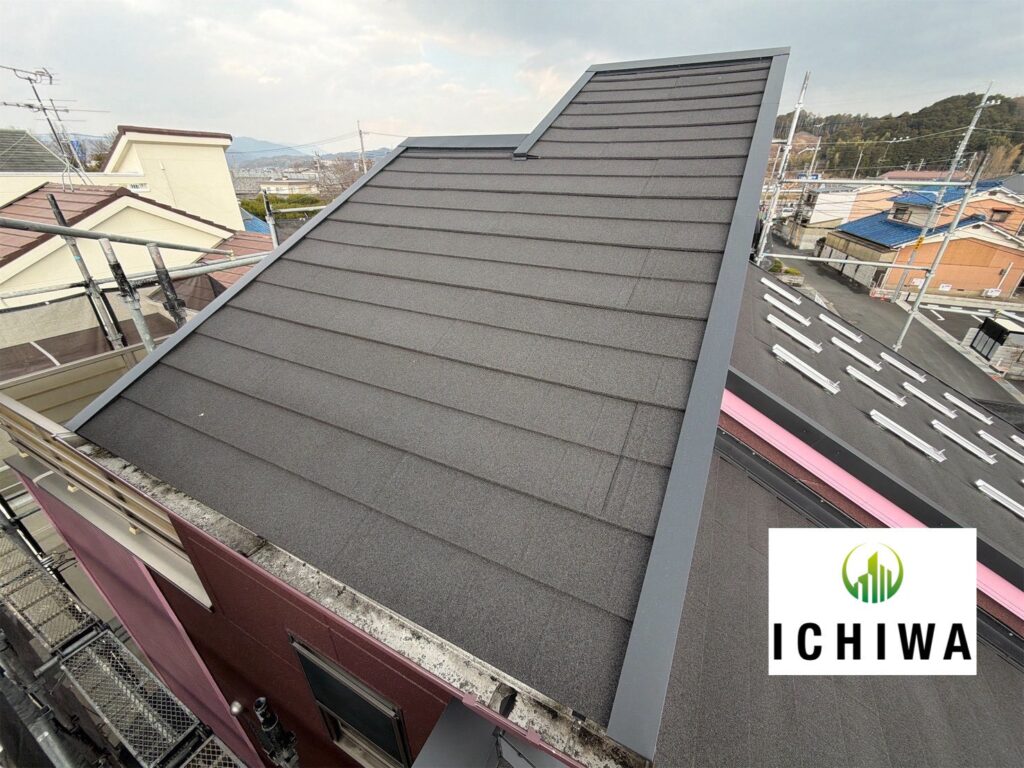 長年の劣化で色あせや傷みが見られた屋根も、カバー工法でしっかりリフレッシュ🔧
